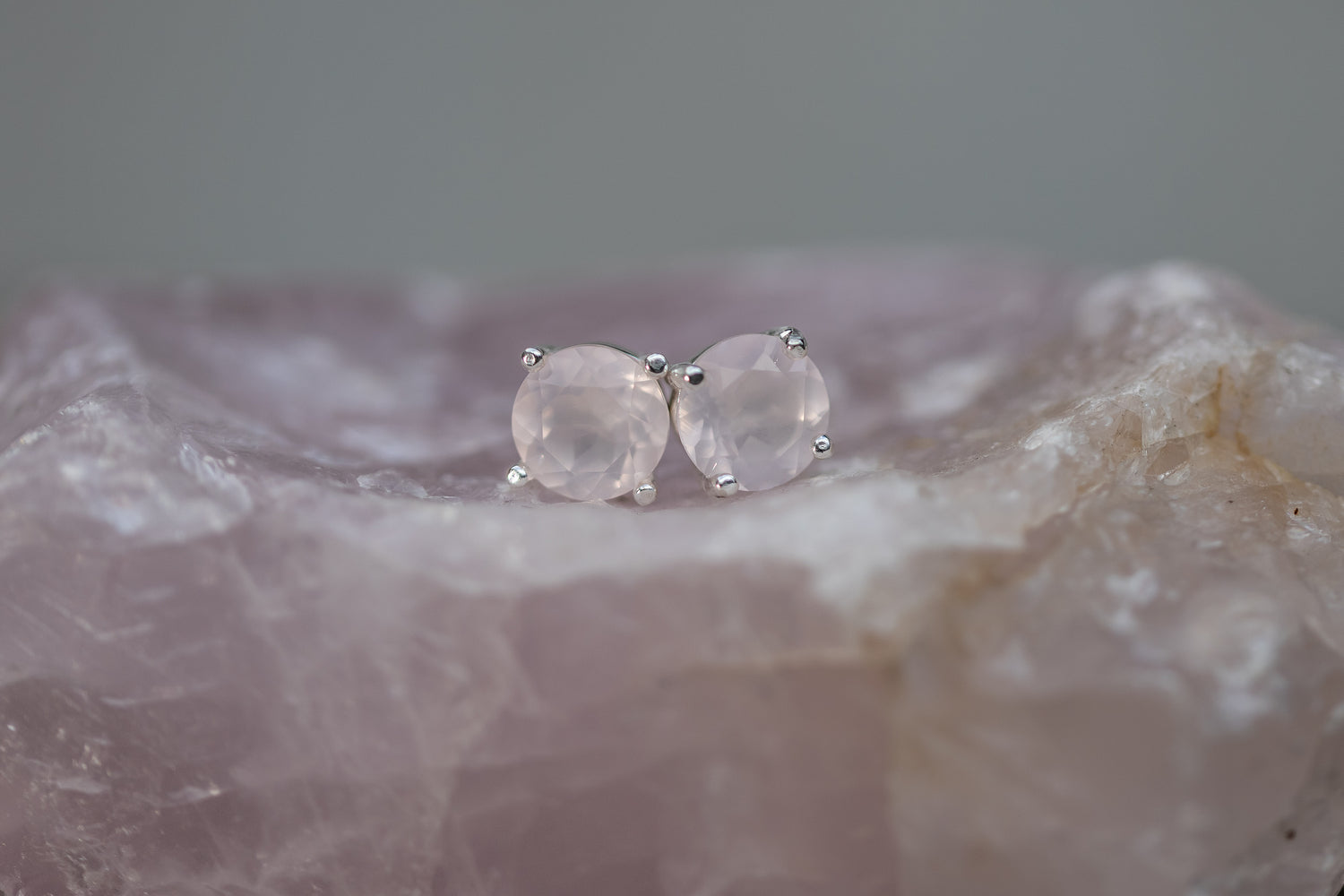 Rose Quartz Stud Earrings 18k+ Gold Plated