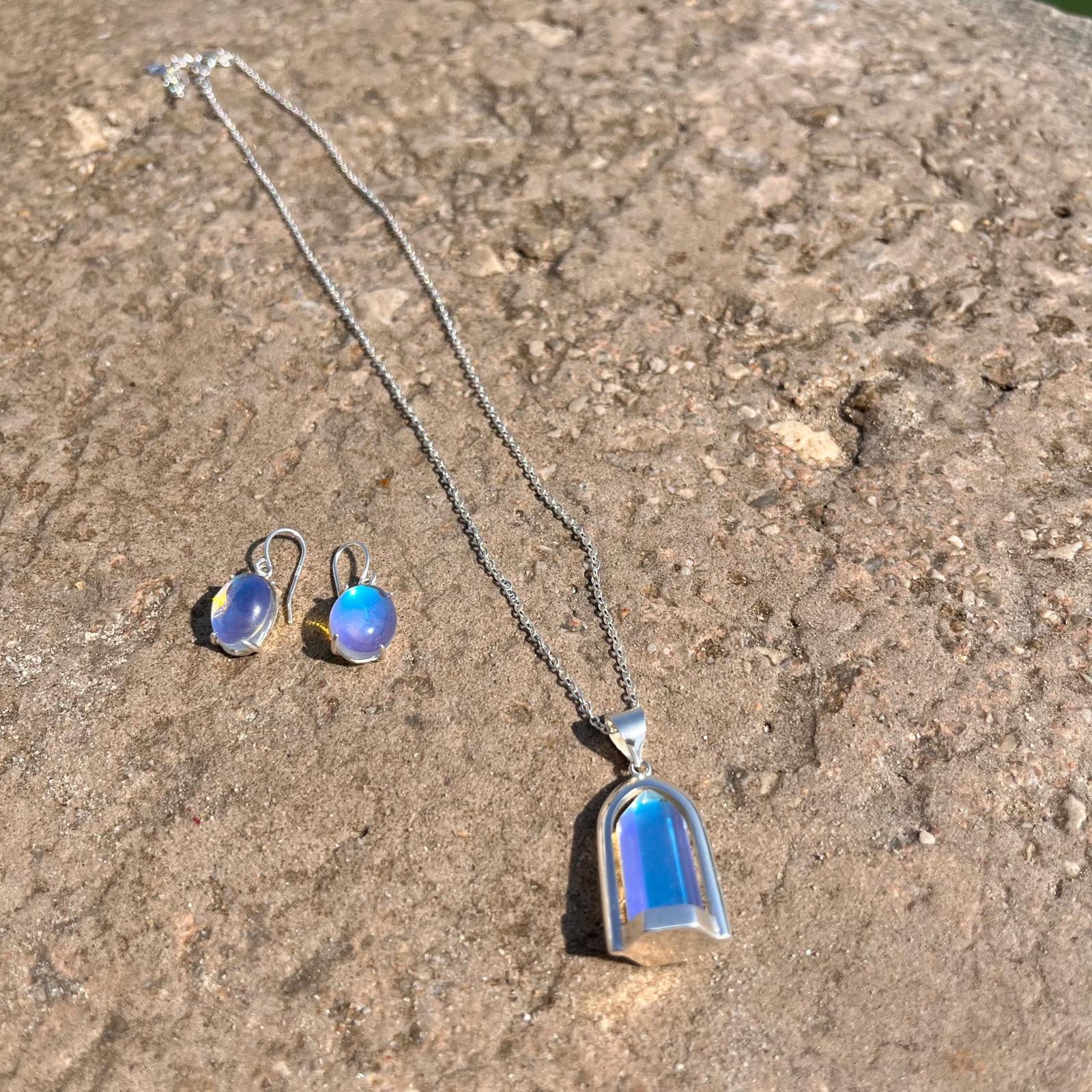 Rainbow Moonstone Sterling Silver Pendant Earrings